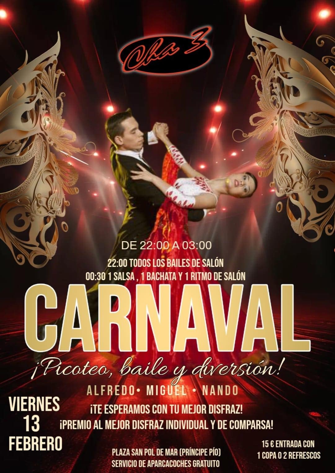 13Febrero22:00Carnaval en Cha3, MadridPicoteo, baile y diversión
