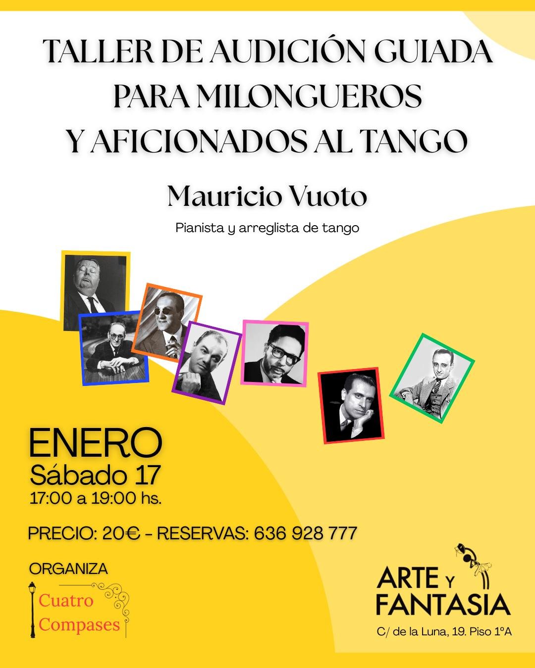 17Enero17:00Taller Audición Guiada MilonguerosArte y Fantasía, Madrid (Callao)
